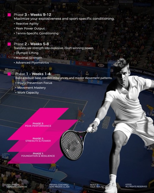 This isn't just another gym class. This is a scientifically backed system designed to rebuild you as a stronger, faster, and more resilient tennis player.